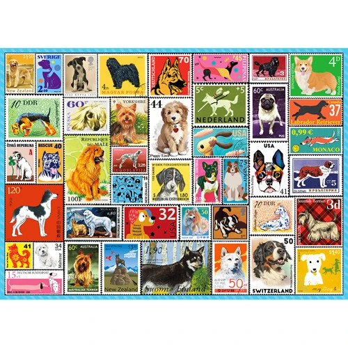 Cute canines return once more in this Dog Stamps puzzle! Featuring colorful illustrations in an easy to assemble collage-format, this 500-piece puzzle is a great gift for dog lovers of all ages. Mini poster included.