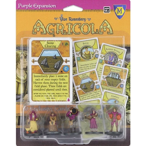 Agricola: Green Expansion is both an upgrade kit for the revised edition of Agricola as well as an expansion. This item contains five pre-painted miniatures with colored accents that can replace one set of wooden player pieces from the base game. In addition, it contains twenty new cards for Agricola, including some that are exclusive to this expansion.