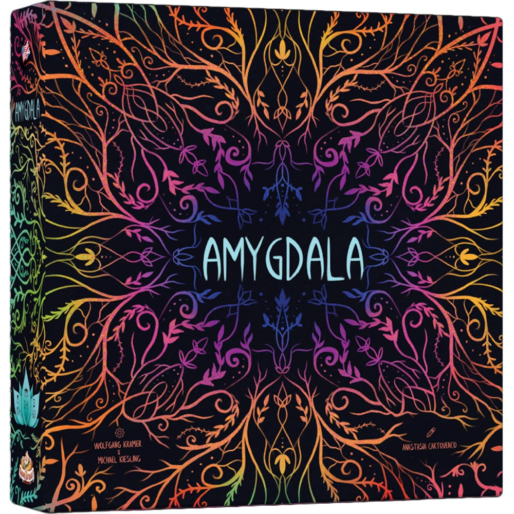 In the abstract strategy game Amygdala, players vie for control of different regions, each associated with an emotion. They must collect and store emotional resources in their memory bank which they will use to unlock emotions from their mind, then place these emotion tiles on the main game board.