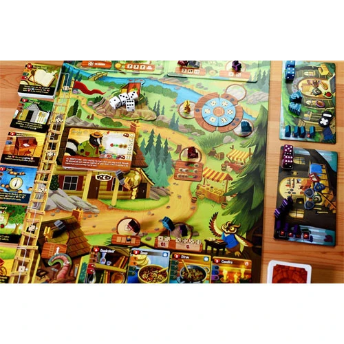 There’s plenty of room for everyone in all of the spots in and around the village. The tricky part is that every location needs certain dice for a successful visit. . .and you only know some of your dice before you send your workers out on errands!