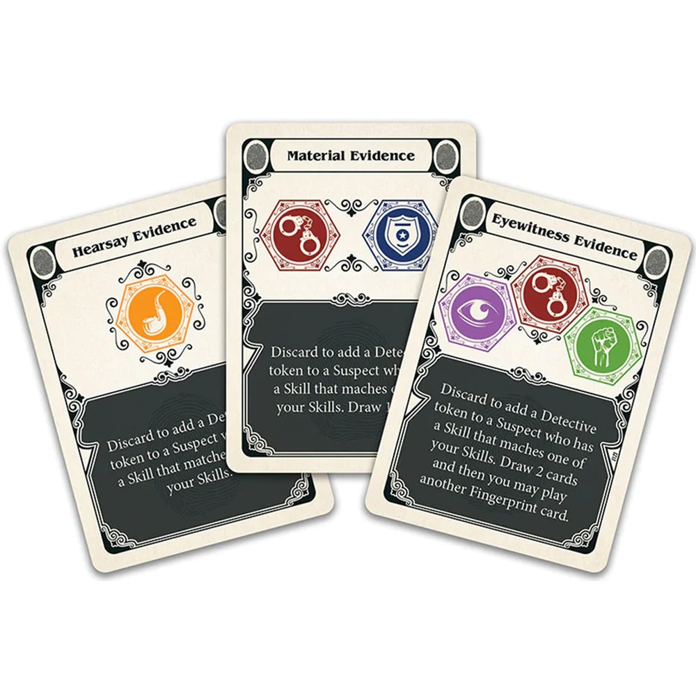 Detective Rummy is a Rummy-style card game for 2 to 4 players, with a storytelling element revealed in a series of 7 different cases. Players take the roles of Detectives vying to solve the cases and gain fame.
