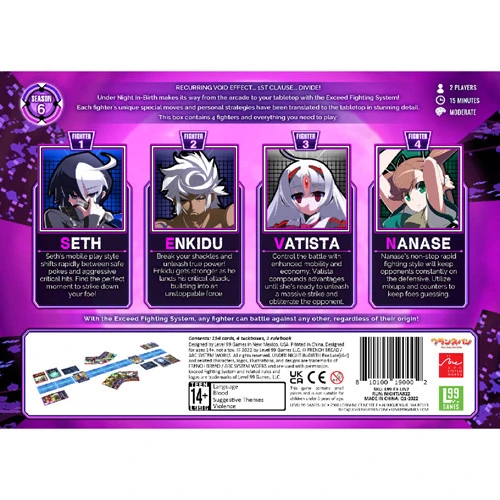 Under Night In-Birth makes its way from the arcade to your tabletop with the Exceed Fighting System! Each fighter’s unique special moves and personal strategies have been translated to the tabletop in stunning detail.