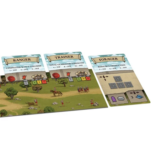 In Hadrian’s Wall, players take on the role of a Roman General, placed in charge of constructing a milecastle and bordering wall. Over 6 years (rounds), players will construct their fort and wall, man the defenses, and attract civilians by building services and providing entertainment – all while defending the honor of the Roman Empire from the waring Picts. The player that can accumulate the most Renown, Piety, Valour, and Discipline, whilst avoiding Disdain, will prove to the Emperor they are the model Roman citizen and be crowned Legatus Legionis!