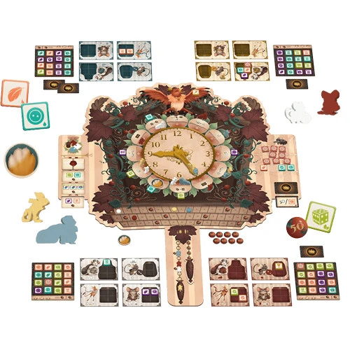 In Hickory Dickory, players each manage a team of mice eager to appease the bewildering bird who inhabits their beloved clock. Ride the minute hand as your mice travel around the clock, hopping off to grab treasures and win Lord Cuckoo’s approval. But beware! The minute hand can hold but so many mice and when things get tight, someone is bound to get booted!