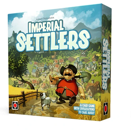 Imperial Settlers is a card game that gives players control over one of four mighty civilizations. There are five rounds to explore new lands, build buildings, produce and trade resources, conquer enemies, and thus score victory points!