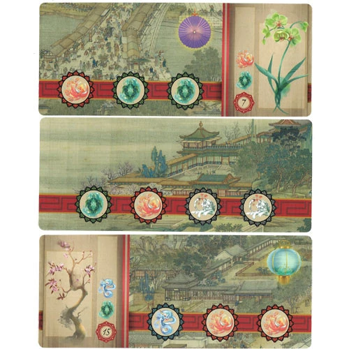 In Journey of the Emperor, players are attempting to create the best experience for the emperor during the Qingming Festival. The organizer that can provide him with the most desirable sights worthy of his stature will be the winner. The “Qing Court Version” of the classic Chinese work of art “Along the River at the Quingming Festival” provides the extraordinary backdrop to this simple but challenging card game.