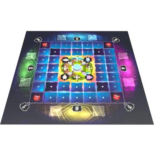 Each turn, all players press, in the order they want, 2 of the 9 buttons on their cockpit dashboard and instantly apply their effect. These buttons allow you to move around in space, shoot a ship or activate the copy action. Each time you move onto a new Space tile, you flip it. If you find out a jammer, you must use 1 energy to destroy it. All players start with 1 energy and can gain 1 energy from each enemy ship killed. Be careful not to shoot a friend, you would make him lose 1 energy. When all players have pressed their two buttons, they flip them again. Please note: it’s great not to forget them for the next turns. Then reveal the end of turn floppy and apply its effect. Alien Spaceships are coming from all sides!
