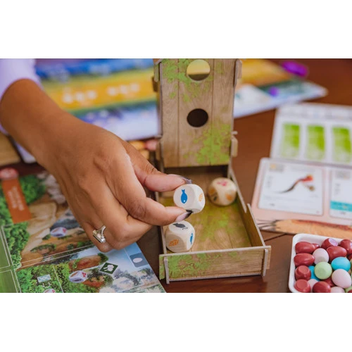 This game can be played on its own for 1-2 players or combined with Wingspan for 1-7 players.