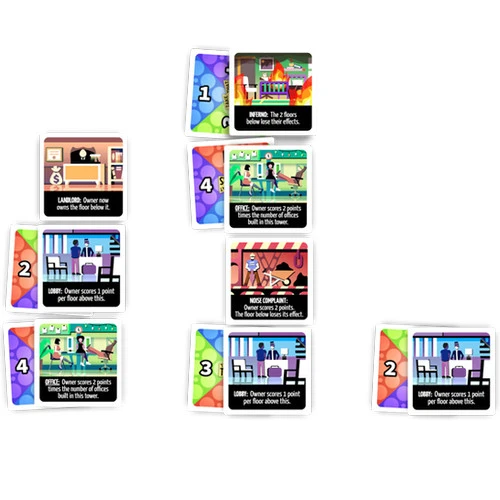 Take-That Towers is a tactical city-building card game that fits in your pocket. Construct high-rises with your friends, scoring points from the floors you build and the real estate you claim. Featuring multi-use cards and delayed-effect mechanics, only those who manage their hands the best will win.