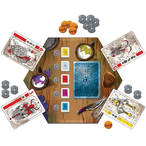 It’s well known in Valeria that the Shadow Guild does the dirty work as the Noble Houses manipulate their status at court, and Thrones brings the cutthroat skills of assassins, thieves, mercenaries, and even the Matriarch herself, to the saftey of your tavern table. Every card, used at the right moment, can turn your fate toward riches or doom your foes to ruination. Do you have what it takes to outplay your opponents and win it all?