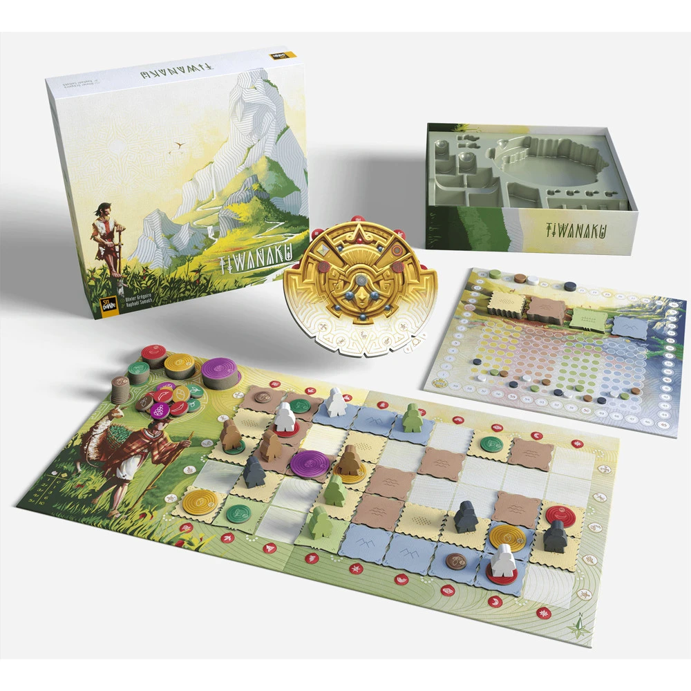 The Pachama wheel specifies the secret setup of the Terrain tiles, determined by the Scenario disc inserted into it before playing. During the game, it indicates the terrain of the spaces on the Quechuas discover, according to the precise location of the space.