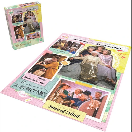 Preserve your favorite moments with Rose, Dorothy, Blanche, and Sophia with a collection of photos and quotes you can piece together! This 1,000-piece jigsaw puzzle of The Golden Girls features a collage of cut-outs, captions, and artwork reminiscent of a scrapbook page for a frameable 19″x27″ reminder that “Everything’s Better with Friends and Cheesecake!”
