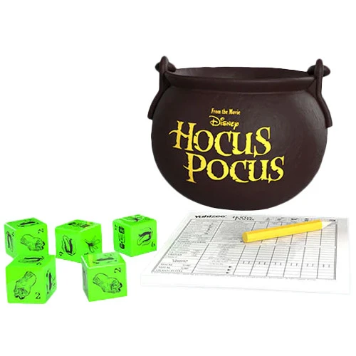 Bring fun and magic to a full rolling bubble with this bewitching twist on America’s #1 Dice Game! Inspired by the classic Halloween comedy, Yahtzee: Disney’s Hocus Pocus lets players “Shake, Roll, and Shout” spells and ingredients from Winifred’s evil book with a custom cauldron dice cup to mix Dash of Pox, Dead Man’s Toe, and more into winning combinations!