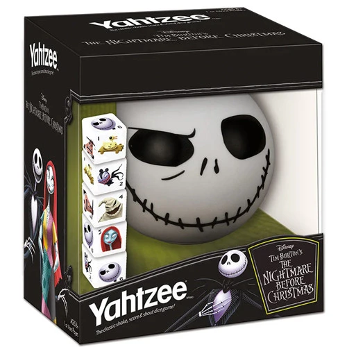 Heads will Roll! Jack Skellington’s that is! Play America’s all-time #1 Dice Game with The Nightmare Before Christmas twist. Ready for you to shake it up are custom dice featuring frightful movie characters including the Mayor, Oogie Boogie, Sally and the Pumpkin King himself. It’s YAHTZEE(R) fun worth screaming about!