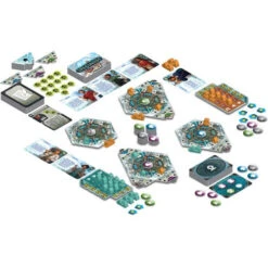 Vinyl: Jukebox is a two-player light-weight set collection game where players construct a jukebox with 45s, which come in five genres, three decades, and have great songs on either A or B sides. To collect 45s, a player must draw coins out of their bag and inserts them into one of two slots. The player will continue until there is a desired match OR their slot(s) are full of coins. As 45s are acquired, the player places them into a 3×3 grid near their player board. The player will score a row or column of three 45s. As the player’s bag empties, they may empty their coin box and earn two bonus coins. Keep in mind that at specific points in the game, the player’s opponent will benefit from the player’s decisions getting free actions to insert coins into their player board. When a player acquires nine 45s, the game end is triggered. The players add their score up from the scoring tokens earned during play plus the points from their private objectives. The player with the most points is the winner.