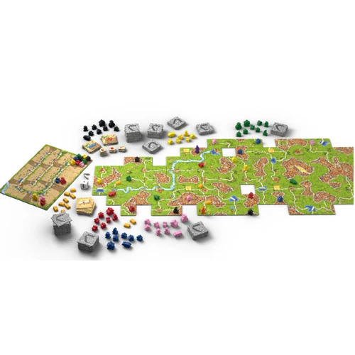 Traders & Builders – Traders vie for goods in the cities, while builders allow players to take multiple turns and accelerate the construction of roads and cities. Pigs on a farm can increase a farmer’s yield.